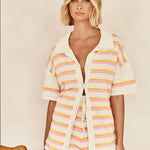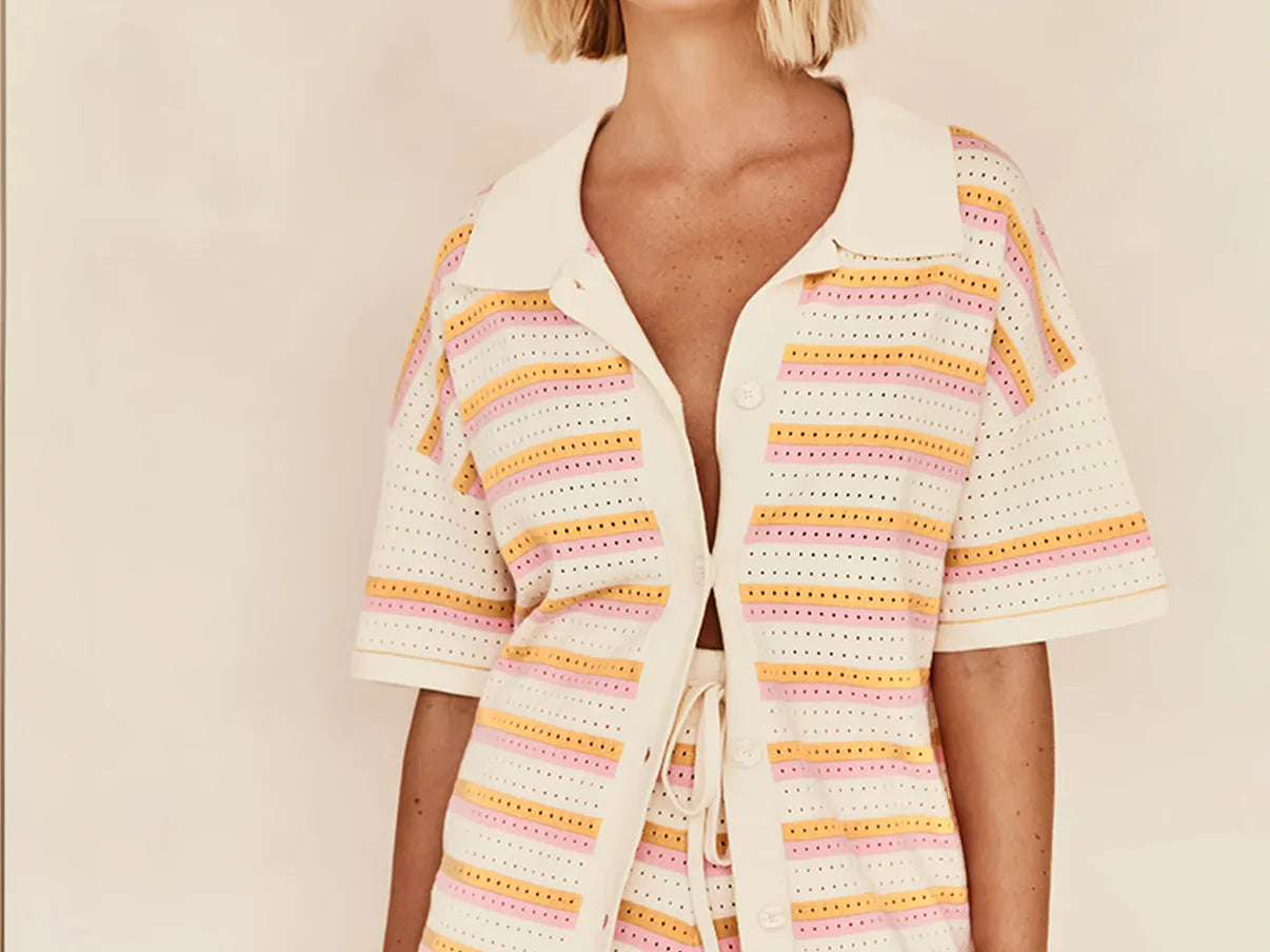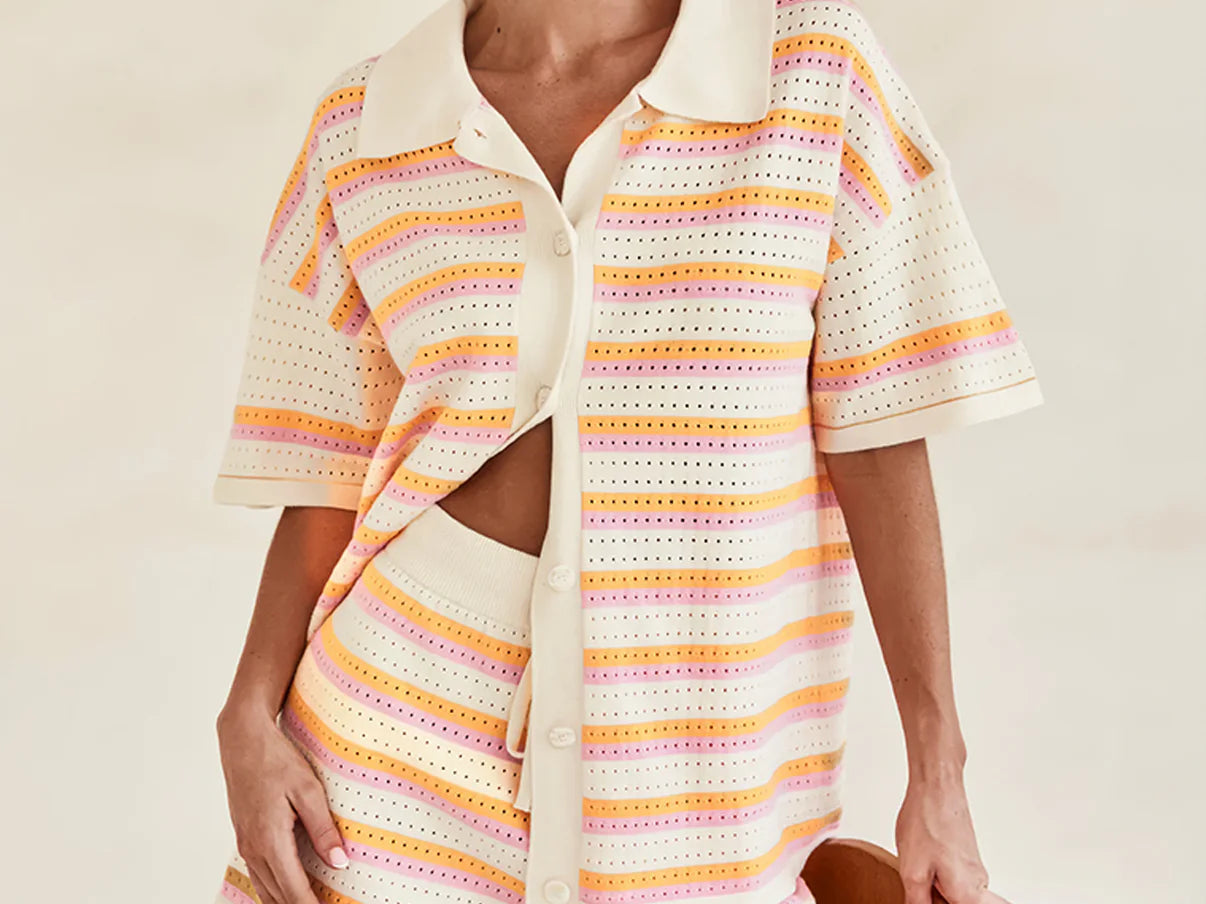 Este conjunto alegre incluye una parte superior relajada con botones y pantalones cortos ceñidos con cintura anudada, perfectos para los días cálidos. La tela suave presenta pequeños orificios que permiten que el aire fluya a través de, manteniéndote fresco. Ideal para descansar junto a la piscina o pasear por la playa, pasa fácilmente de una prenda de baño a un conjunto informal y elegante. Mezcla y combina con otras prendas de guardarropa para lograr infinitos looks de verano.