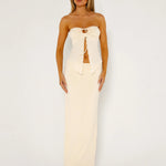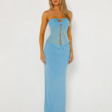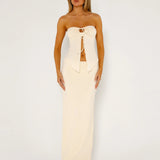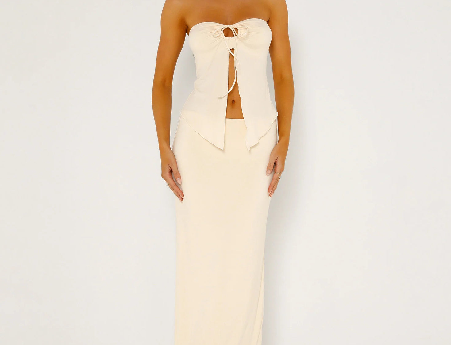 Este impresionante conjunto es perfecto para el verano. La falda larga combina perfectamente con el top de tubo, que presenta un elegante corte en el centro. Crea una apariencia sexy y al mismo tiempo favorece el cuerpo en los lugares correctos. La parte superior se puede ajustar con lazos, lo que garantiza un ajuste perfecto para cada tipo de cuerpo. La falda tiene un corte bajo y un largo maxi.