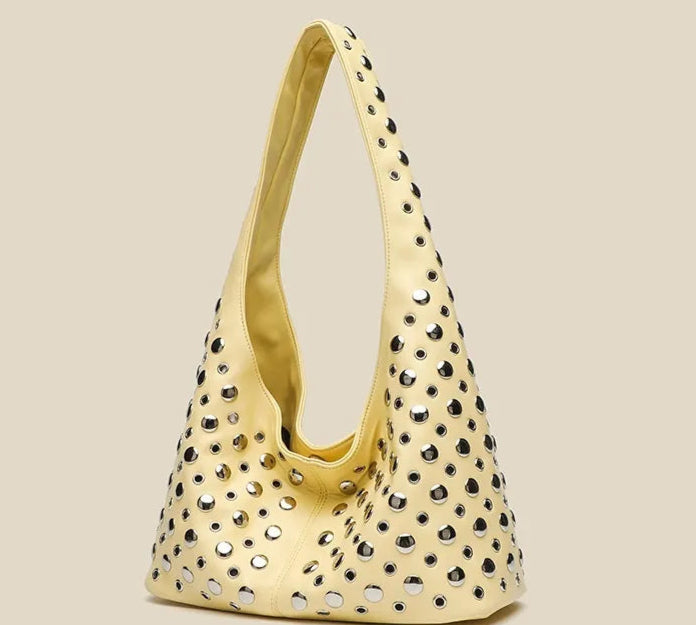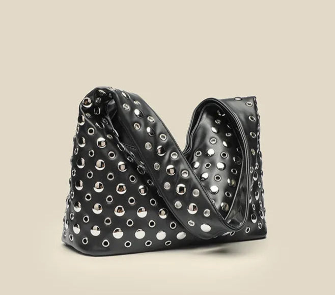Dale a tu atuendo una mejora instantánea de estilo con nuestro Bolso de Hombro Samara con Tachuelas. Este llamativo bolso tiene suficiente espacio para todos tus esenciales, mientras que el diseño de cuero combinado con tachuelas sutiles añade un toque audaz y a la moda. Realmente un imprescindible para cualquier guardarropa.