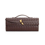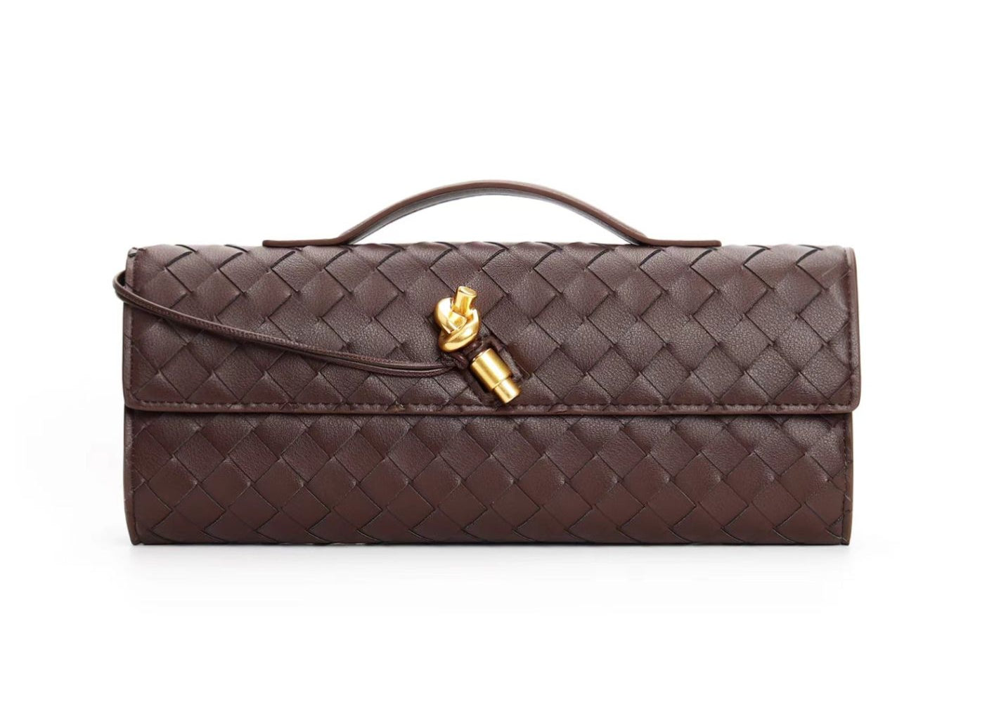 Le pochette tressée en cuir Diana allie un savoir-faire intemporel à une sophistication moderne. Tissée à la main à partir de cuir de qualité supérieure, sa silhouette structurée en fait un accessoire remarquable pour le jour comme pour le soir. Conçue pour la polyvalence, elle dispose d'une poignée supérieure et d'une bandoulière amovible qui peut être retirée ou attachée selon votre style. La quincaillerie dorée ajoute une touche d'élégance, tandis que la fermeture à rabat sécurisée garde vos essentiels en sécurité. Parfaite pour rehausser les looks décontractés comme formels, cette pochette est un investissement vestimentaire auquel vous ferez appel saison après saison.