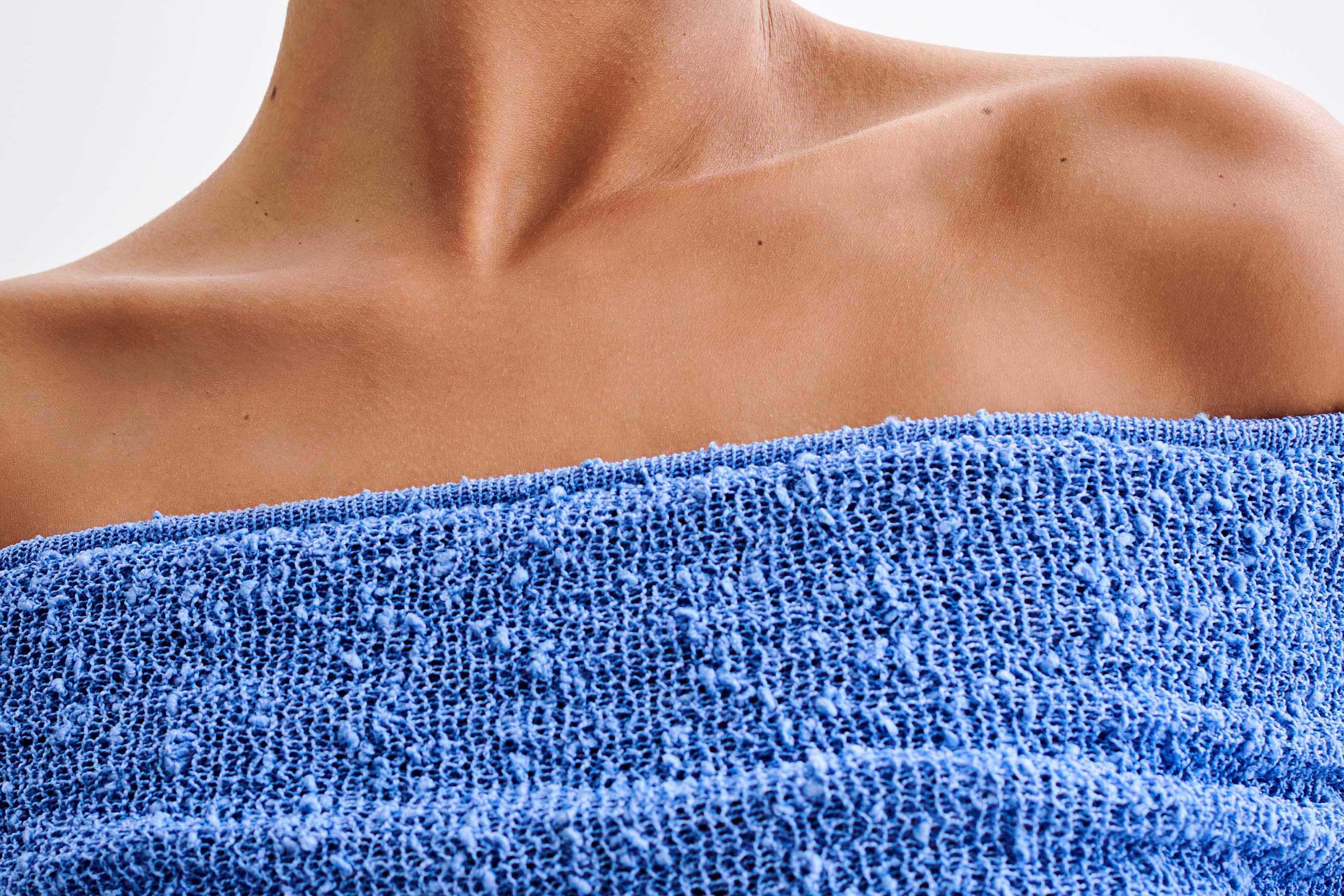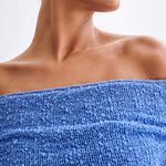 Met zijn geribde ontwerp, gedrapeerde stijlen lange wijd uitlopende mouwen zal de Amelia off-shoulder mini-jurk je figuur zeker benadrukken en de aandacht trekken van alle hoeken. De off-shoulder snit voegt een vleugje verfijning en flair toe, terwijl de natuurlijke stretch van de stof je rondingen op de juiste plaatsen volgt.