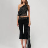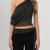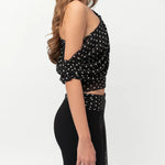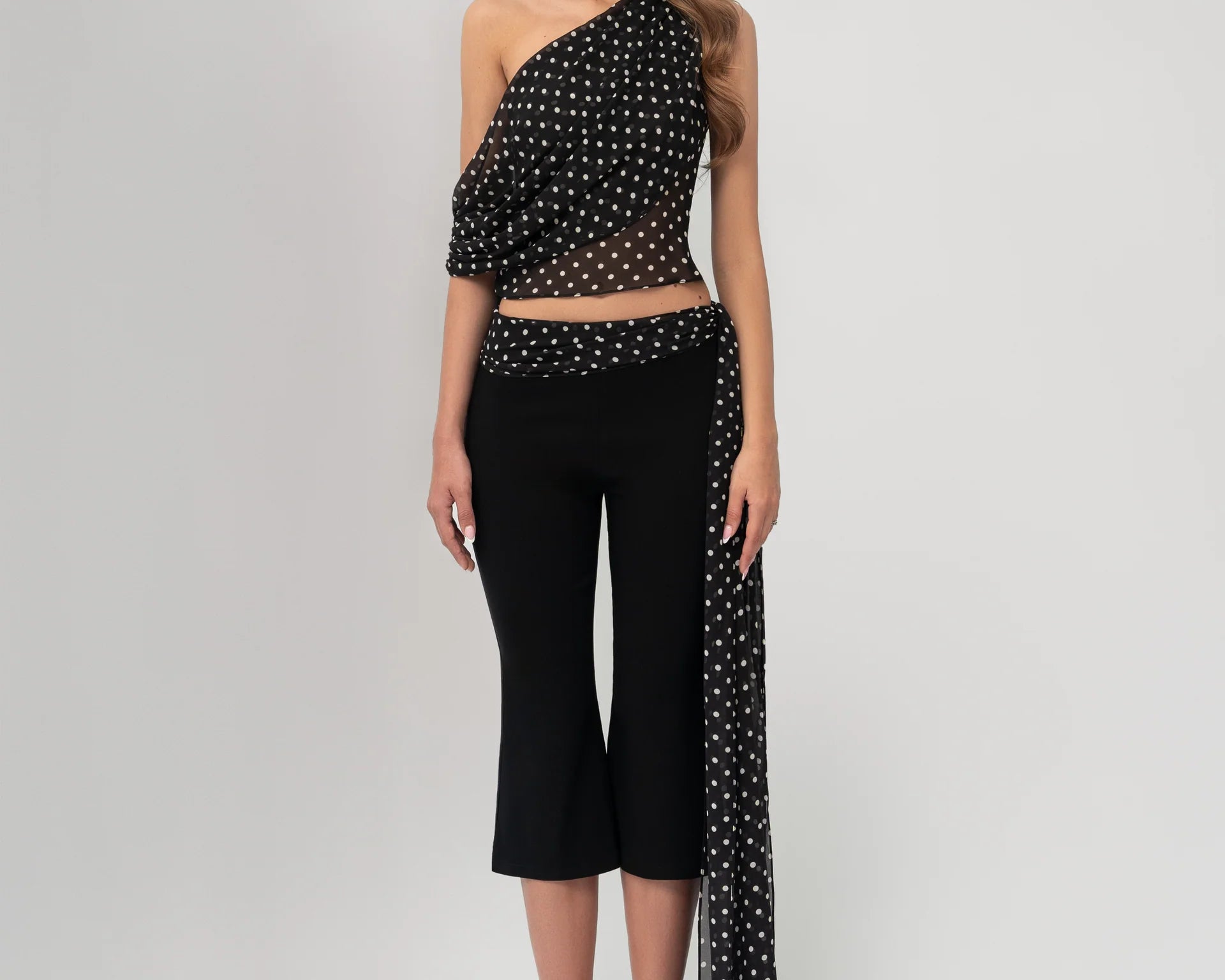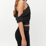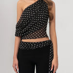 De Amora Polkadot One-Shoulder Top heeft een stijlvolle one-shoulder snit met leuke polkadot patronen, een zijrits en een bijpassende riem die prachtig valt. Gemaakt met gelaagde stof voor extra bedekking en structuur, combineert deze top perfect met capri broeken of zwarte jeans voor een verzorgde look.