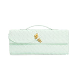 De Diana Geweven Leren Clutch Tas combineert tijdloos vakmanschap met moderne verfijning. Met de hand geweven van hoogwaardig leer, maakt de gestructureerde silhouet het een opvallend accessoire voor zowel dag- als avondkleding. Ontworpen voor veelzijdigheid, heeft het een bovenhandvat en een afneembare schouderriem die kan worden verwijderd of bevestigd om bij je stijl te passen. Goudkleurige hardware voegt een vleugje elegantie toe, terwijl de veilige klep sluiting je essentials beschermt. Perfect om zowel casual als formele looks te versterken, is deze clutch een investering voor je garderobe waar je seizoen na seizoen naar zult grijpen.