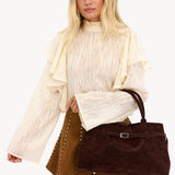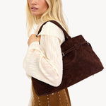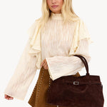 De Luna City Bag is het item voor Lente 2025. De tas heeft een suede uitstraling maar is gemaakt van vegan faux leer. Het is ruim en groot genoeg om al je dagelijkse benodigdheden mee te nemen. De tas heeft handvatten voor gemakkelijk dragen en heeft een gespdetail aan de voorkant.