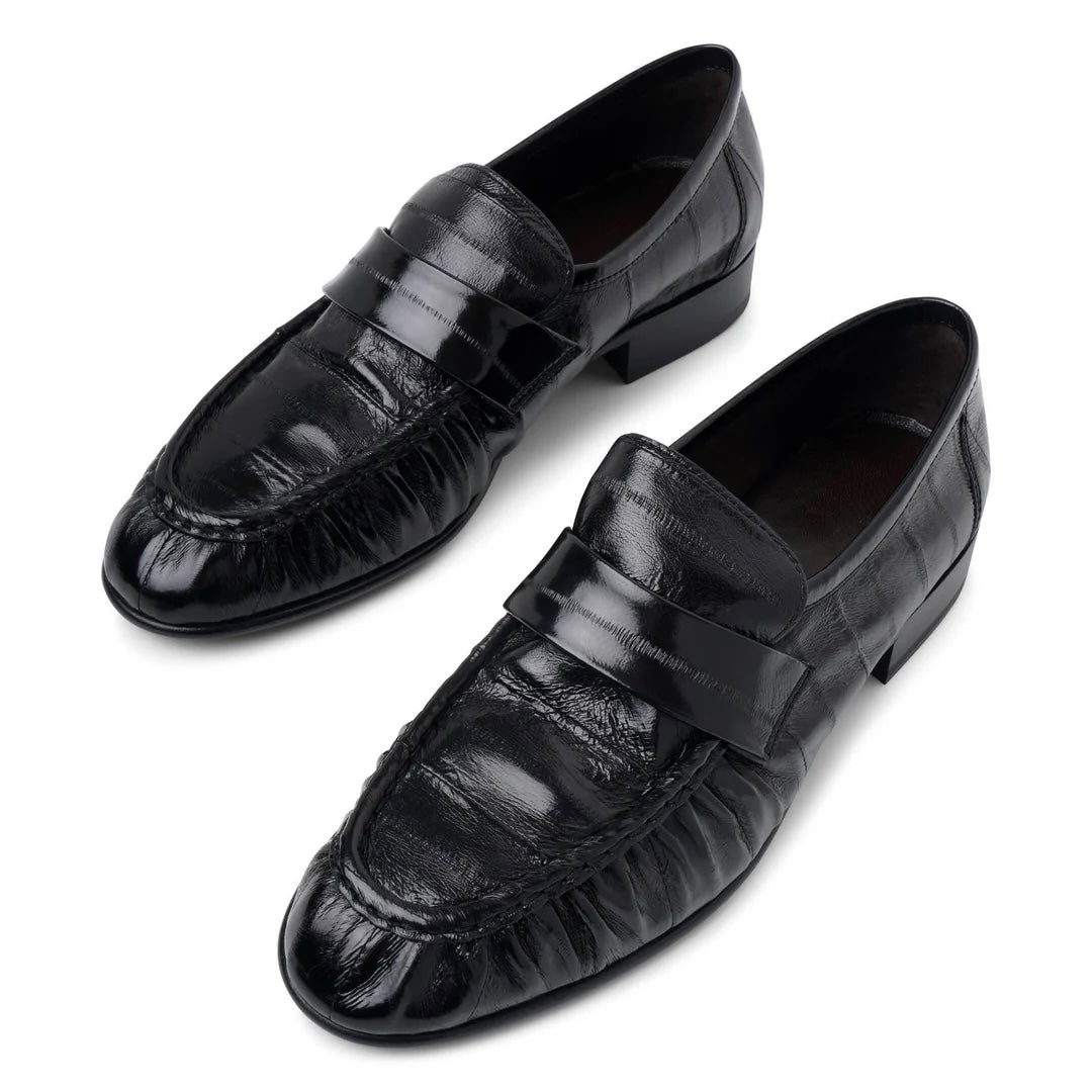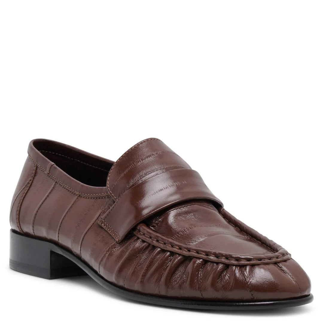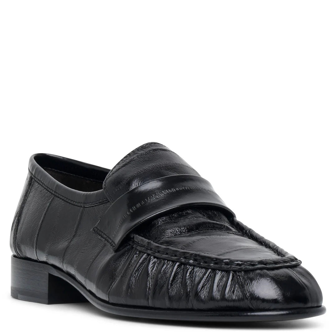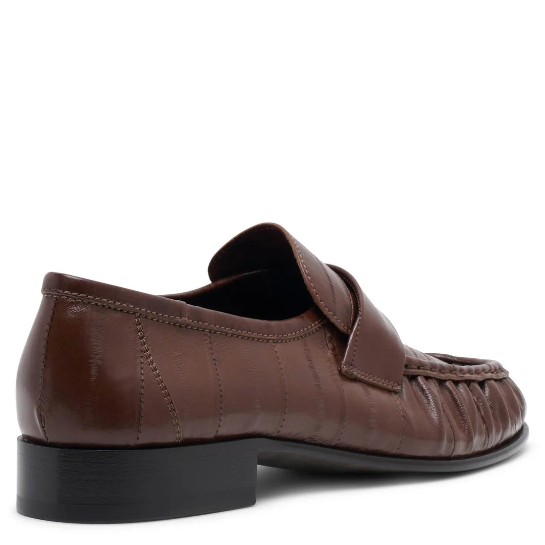 De Nova leren penny loafer herinterpreteert een klassieker met een gedurfde textuur en moeiteloze verfijning. Gemaakt van rijk, soepel leer met een kenmerkende geplooide afwerking, voegt hij een subtiel karakter toe aan elke look. De brede penny band en het gebeeldhouwde silhouet creëren een moderne balans tussen structuur en zachtheid. Ontworpen voor comfort de hele dag met een subtiele verhoging, brengt de Nova ingetogen luxe naar zowel formele als ontspannen stijlen.