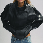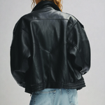 De Quinn Leren Jas met Hoge Kraag met leerlook speelt met proportie en attitude. De gedurfde hoge kraag en sculpturale schouders herdefiniëren wat een leather-look stuk kan zijn: gestructureerd maar vloeiend, sterk maar ingetogen. Gemaakt van glad, korrelig veganistisch leer, beweegt het met stille zelfverzekerdheid. Subtiele details, van verborgen zakken tot een zacht gebogen zoom, geven het diepte zonder afleiding. Het resultaat: een statement jas die moeiteloos modern aanvoelt, gemaakt voor degenen die hun stijl liever zacht laten spreken maar toch opvallen.