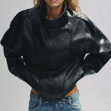 Quinn leren jas met hoge kraag