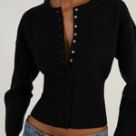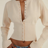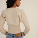 De Harley Gebreide Cardigan is perfect voor wie graag iets extra's toevoegt aan hun minimalistische garderobe. Met zijn volumineuze schouders en getailleerde taille geeft deze cardigan een vleugje flair terwijl hij een strakke stijl behoudt. De bewust dramatische mouwen zorgen zeker voor een statement. Combineer hem met laag uitgesneden jeans voor een perfecte look.