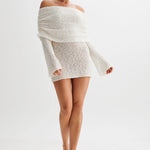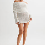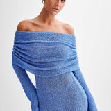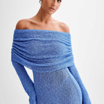 With its ribbed design, drape-styled and long flared sleeves, the Amelia off shoulder mini dress is sure to enhance your figure and catch eyes from all angles. The off-shoulder cut adds a touch of sophistication and flair, while the fabric's natural stretch hugs your curves in all the right places.