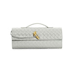 The Diana Woven Leather Clutch Bag combines timeless craftsmanship with modern sophistication. Handwoven from premium leather, its structured silhouette makes it a standout accessory for both day and evening wear. Designed for versatility, it features a top handle and a detachable shoulder strap that can be removed or attached to suit your style. Gold-tone hardware adds a touch of elegance, while the secure flap closure keeps your essentials safe. Perfect for elevating both casual and formal looks, this clutch is a wardrobe investment you’ll reach for season after season.