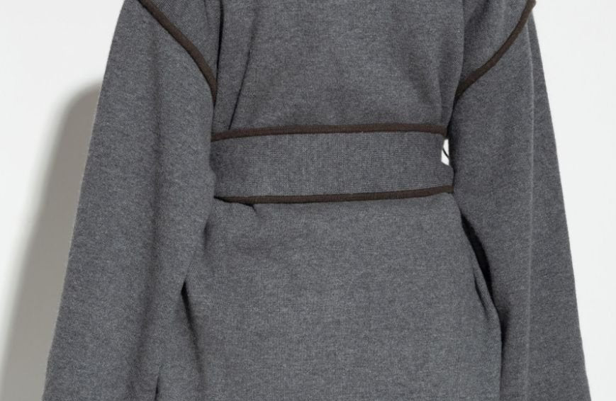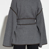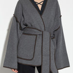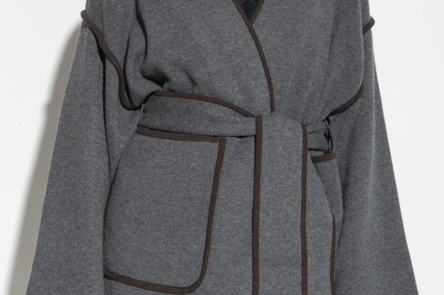The Estelle Overcoat combines elegance and comfort in a modern, minimalist design. Crafted from soft, high-quality fabric, this grey coat features a relaxed fit with wide sleeves and contrasting dark trim for added sophistication. Its wrap style with a matching belt allows for an adjustable, flattering silhouette that suits any body type. Two spacious front pockets add practicality without sacrificing style.