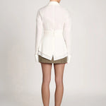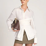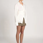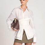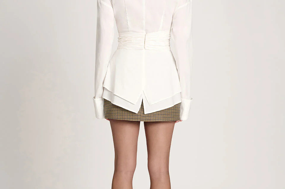 Bring a sophisticated edge to your outfit with the Elodie Fitted Shirt. Its distinctive design gently emphasizes your silhouette with a delicate, feminine touch, complemented by lightweight fabric that adds elegance. The double waist detail shapes a tailored fit that enhances your figure while keeping comfort intact. Ideal for pairing with tailored pants or jeans, it’s suitable for both polished and casual styles.