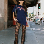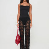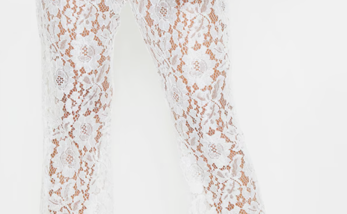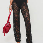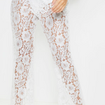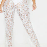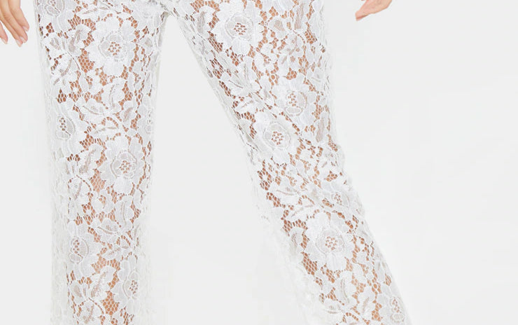 The trend for 2024... Update your closet with these Gina sheer lace pants. Complete with built-in underwear, an elastic waistband, and a straight leg design, we can't get enough. Pair with the matching crop top and heels for a look that will have you obsessed.