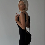 This dress is a true statement piece. Are you looking for a unique dress? Look no further. The Olivia backless maxi dress exudes elegance with its draped back. The straps can be fastened in various ways from back to front, making the dress highly adjustable and suitable for everyone. You can tie the straps in the standard way or get creative with a crisscross design. The dress gracefully flows down to the floor.