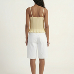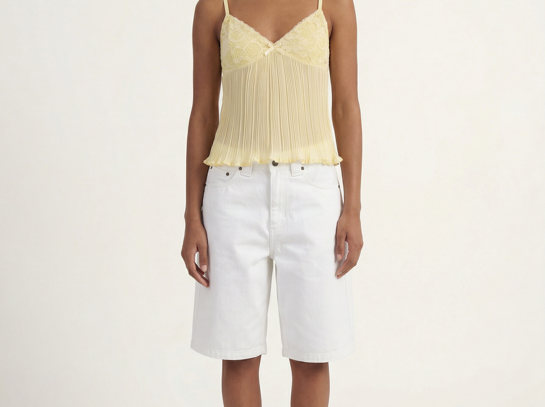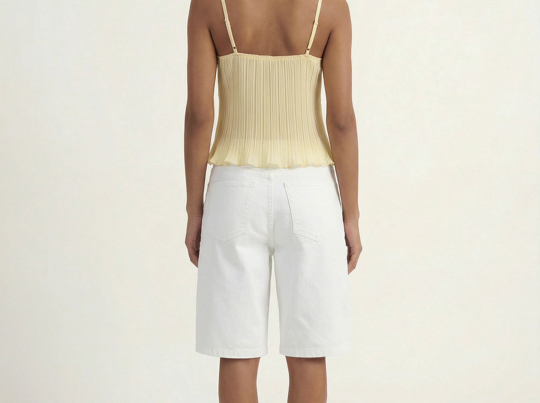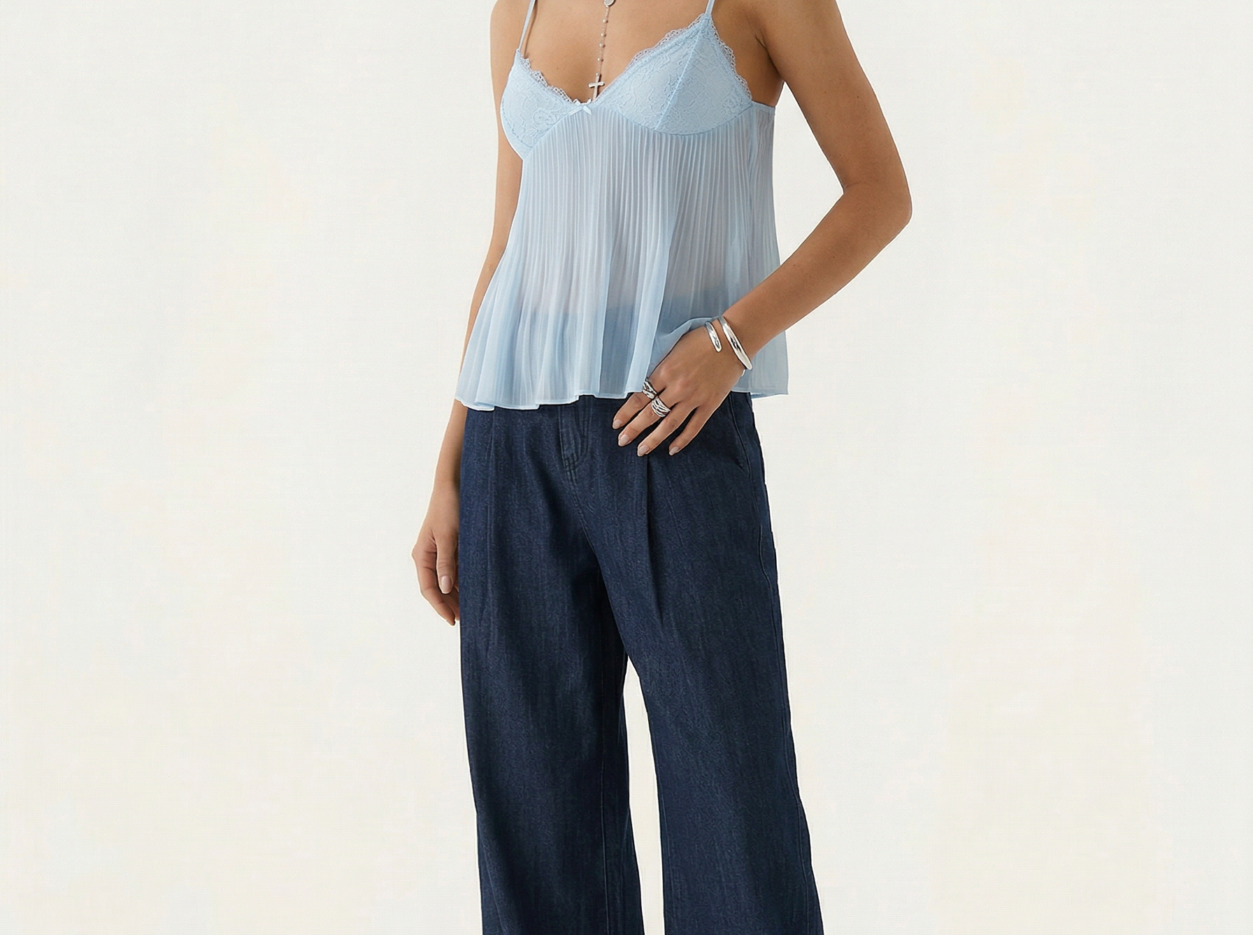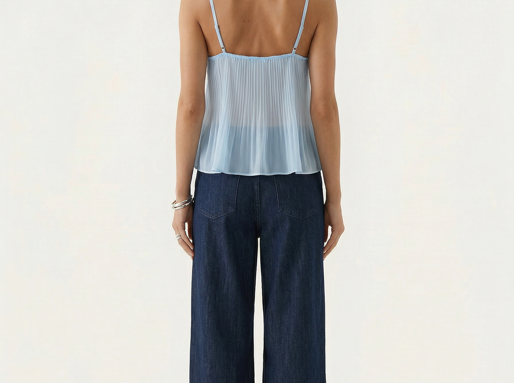 The Tatum Pleated Top brings effortless charm with its soft pleated fabric and delicate lace details. Featuring adjustable spaghetti straps and a flattering, flowy silhouette, this top adds a romantic touch to any look. The lightweight, semi-sheer fabric gives it a dreamy feel, perfect for warm days or layering. Style it with denim for a casual vibe or dress it up with tailored trousers for an elevated look.