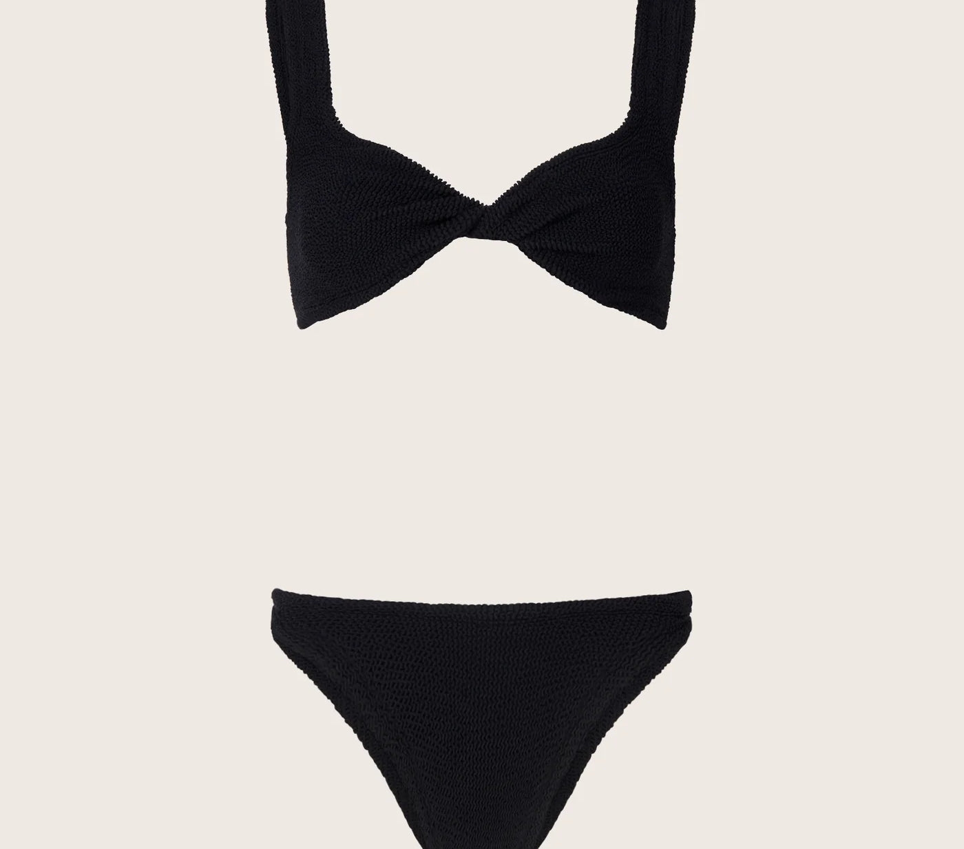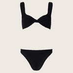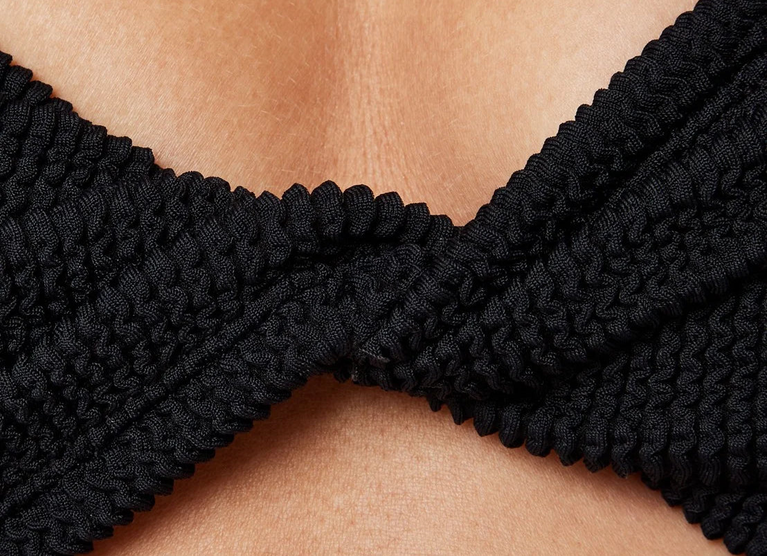 This bikini set speaks for itself: it is comfortable, modest, yet very stylish. The Zoey Twisted Bikini Set comes in many different colors, each of which flatters every body type. The fabric of the bikini has a cute crinkled texture, adding dimension. As a detail, there is a twist in the bikini top.